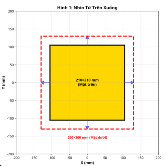 - Phân tán tải trọng hiệu quả: Tăng diện tích từ 0.044 m² (210×210) lên 0.0676 m² (260×260).